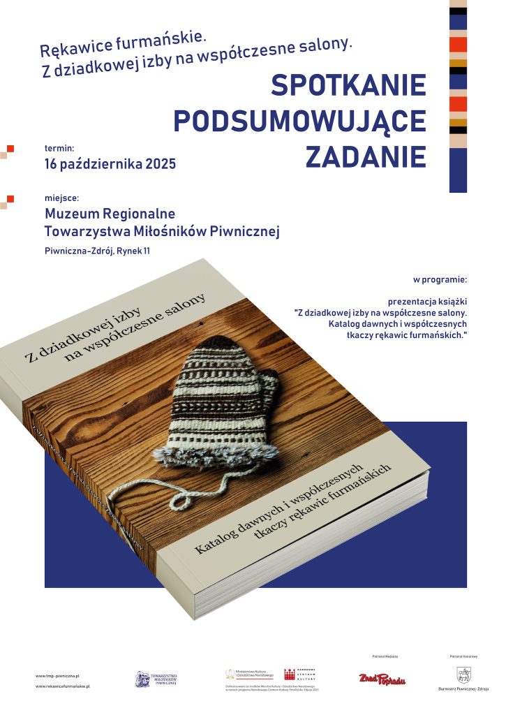 Zapraszamy do Muzeum Towarzystwa Miłośników Piwnicznej na spotkanie podsumowujące Zadanie, połączone z prezentacją wydawnictwa poświęconego historii tkactwa przestrzennego w Karpatach oraz dawnym i współczesnym tkaczom rękawic furmańskich z Piwnicznej i okolic.